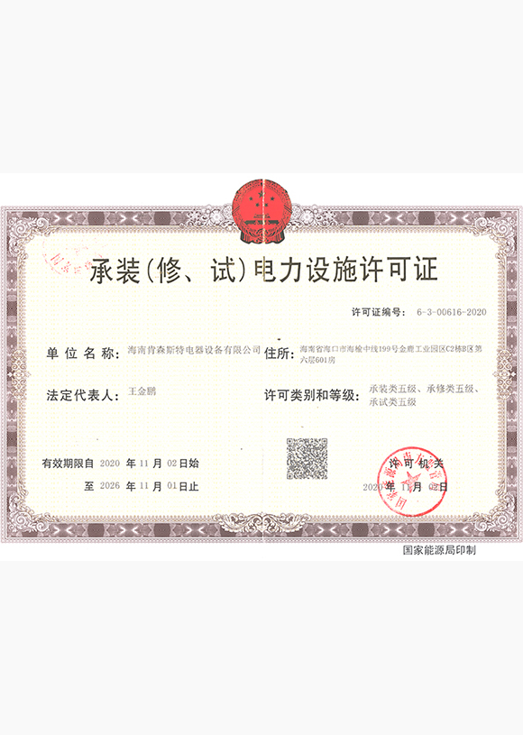 ³Ð×°£¨ÐÞ¡¢ÊÔ£©µçÁ¦Éèʩʩ¹¤ÔÊÐíÖ¤ Îå¼¶